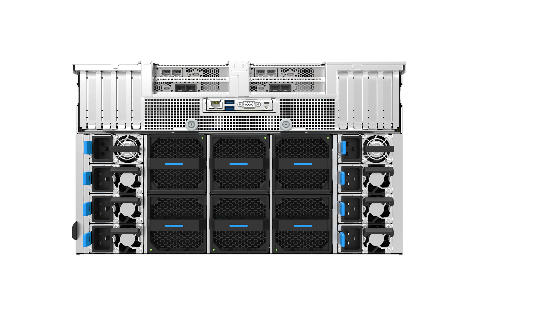 | PCIe插槽 | 支持10个PCIe 5.0 x16插槽(其中1个PCIe 5.0 x16插槽可替换为2个PCIe 5.0 x8 速率的x16槽位) |
