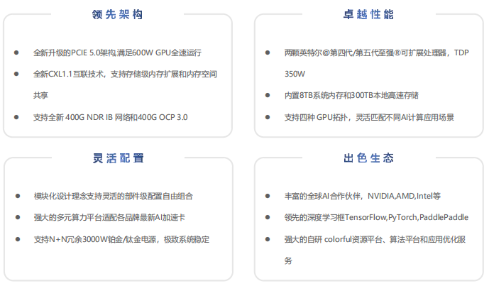 具备卓越多元算力性能、极致弹性架构深度学习、元宇宙、AIGCAI+Science等复杂应用场景大容量显存与高带宽支持,数据处理更高效。