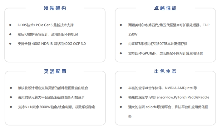 具备卓越多元算力性能、极致弹性架构深度学习、元宇宙、AIGCAI+Science等复杂应用场景大容量显存与高带宽支持,数据处理更高效。