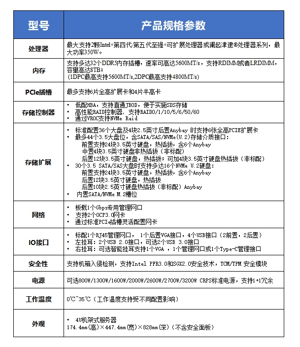 X4-3622S是旭祥推出的一款冷存储服务器。基于英特尔®至强®第四、 五代可扩展处理器 ,配合8通道5600MT/s DDR5内存技术打造 ,4U机框前 后水平热插拔槽位 ,标准支持36个3.5盘;支持Broadcom和Microchip两 大系列主流HBA和Raid卡;面向金融 ,安防 ,交通 ,能源 ,教育 ,医疗,广电等行业,为用户提供高性能、大容量、高扩展性、高可靠性、高性价比的 存储服务。