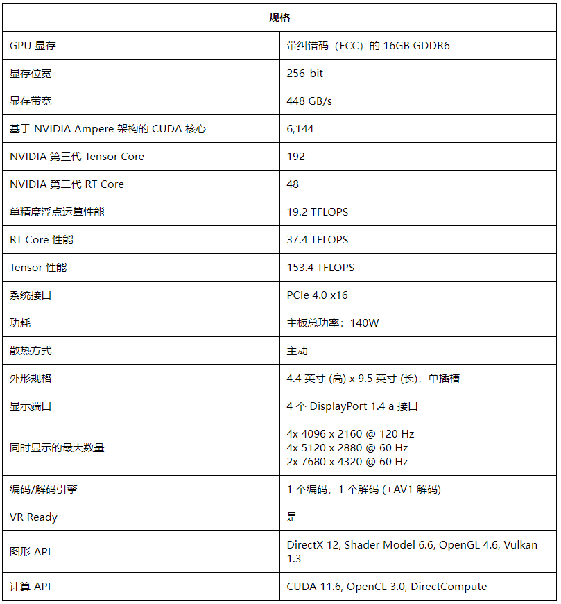 NVIDIA RTX™ A4000 是面向专业人员的功能超强型单插槽 GPU,能在桌面上提供实时光线追踪、AI 加速计算和高性能图形性能。