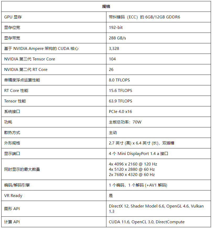 NVIDIA RTX™ A2000 和 A2000 12GB 采用强大的半高设计,可将 NVIDIA RTX 技术引入专业工作站。使用实时光线追踪和加速 AI 改变您的工作流,创建逼真概念、运行 AI 增强的应用,或在引人入胜的 VR 环境中进行审核。